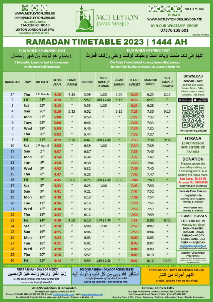 Prayer Timetable